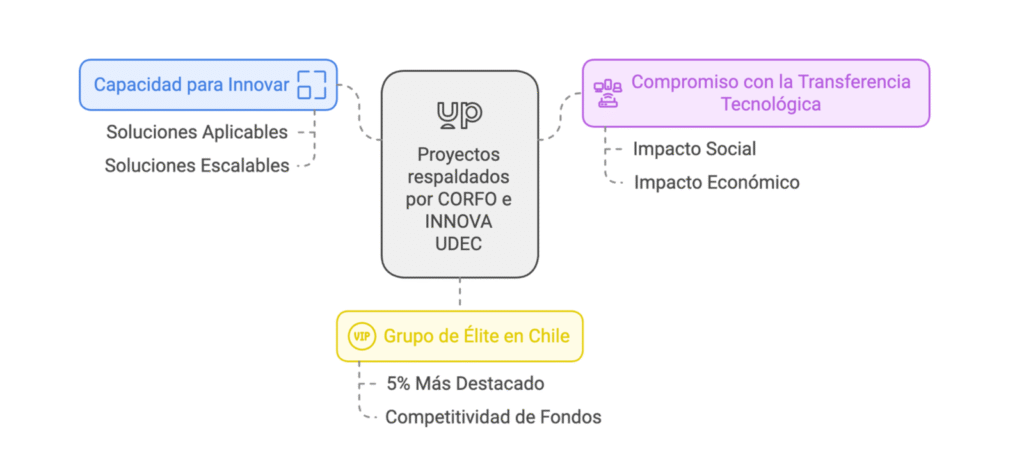 Innovación y emprendimiento científico-tecnológico:Los proyectos con respaldo de CORFO e INNOVA UDEC no solo validan la calidad técnica de sus ideas, sino que demuestran: