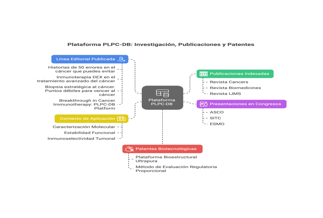 La plataforma DEX – PLPC-DB ha sido validada mediante una secuencia internacional de publicaciones indexadas, congresos de alto impacto y línea editorial estratégica, transformándose en la Inmunoterapia Personalizada en Cáncer de mayor respaldo científico validado en Latinoamérica, sumado al mayor banco de video-testimonios exitosos en su área. Su marco técnico-jurídico está protegido por dos patentes PCT en trámite: una sobre composición bioestructural y otra sobre evaluación regulatoria proporcional sin ensayo clínico. Esta base permite articular un modelo de aprobación sin IND, sin toxicología animal y sin farmacodinámica convencional. El dossier resultante cumple con las exigencias de revisión documental, que deja a la Plataforma DEX / PLPC-DB posicionada como el primer inmunobiológico vesicular trazable con respaldo integral de ciencia, publicación, protección intelectual y estructura regulatoria armonizada.